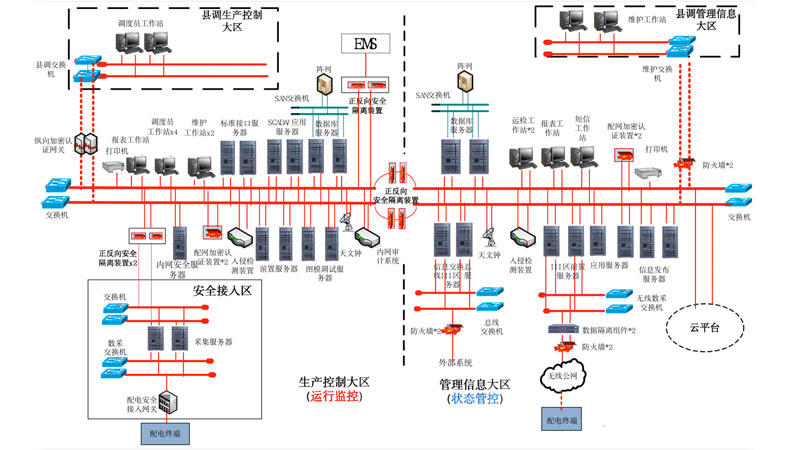 新一代配電自動化系統主站以大運行與大檢修為應用主體,遵循國網最新的配電主站系統架構規范,按照“地縣一體化”部署,依據分區采集的原則,強化邊界防護,安全接入光纖/無線、專網/公網等通訊方式的三遙終端、二遙終端及故障定位裝置,具備橫跨生產控制大區與管理信息大區一體化支撐能力,構建基于配電網分析模型中心和運行數據中心的新一代配電網調度支撐平臺,為運行控制與運維管理提供一體化的應用,滿足配電網的運行監控與運行狀態管控需求。 系統全面遵循IEC61968/61970標準設計,通過信息交互總線,實現與EMS、PMS2.0等多系統的數據共享,具備對外交互圖模數據、實時數據和歷史數據的功能,支撐各層級數據縱、橫向貫通以及分層應用,形成配電網運行監控與調度作業的全過程閉環管理,支撐著配電網調控運行、生產運維管理、狀態檢修、缺陷及隱患分析等精益化管理,并為配電網規劃建設提供數據支持。