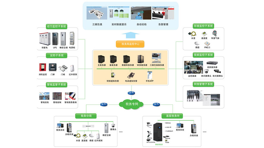 基于3D虛擬仿真技術對實景進行1:1還原,能夠實現基于三維環境對信息機房、機柜和各類設備的管理,構建信息機房環境、設備和管理信息的可視化平臺,真實呈現監控對象的外觀、位置及狀態,清晰直觀的掌握IT運營中的有效信息,實現透明化與可視化的管理;提供手機APP,實現全天候全地域查看設備的狀態、設備視頻等功能;具備三維巡檢功能,模擬真實環境下對機房進行巡檢的過程。
